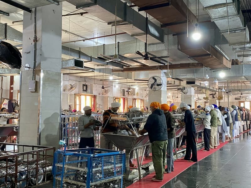 食堂の運営はボランティアで成り立っているため、多くの人々が食事の準備、皿洗いなどを手伝う光景も見られます。ちなみに、黄金寺院に限った特別な食堂というわけではなく、世界中のシク教寺院や集会などで行われているそうです。