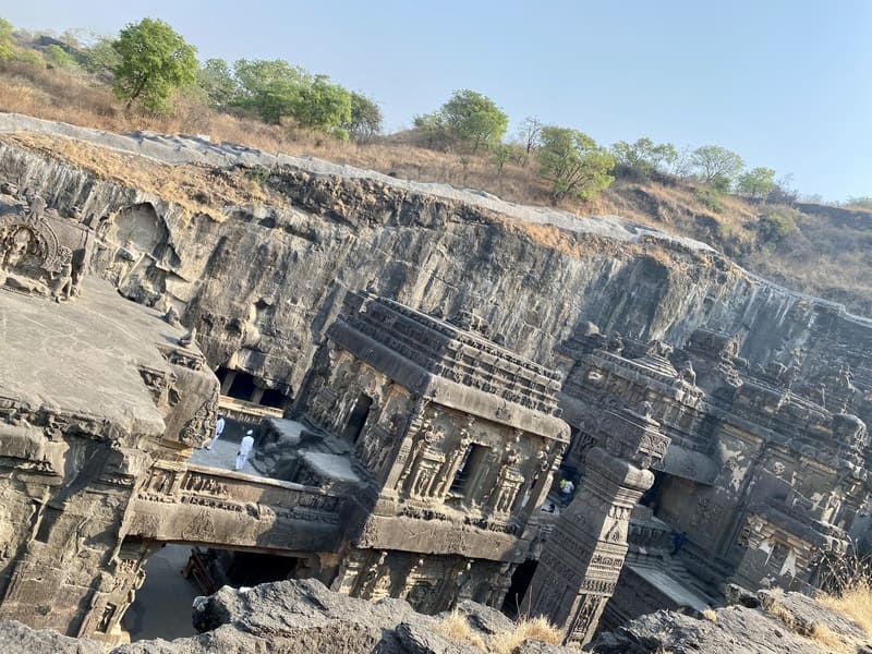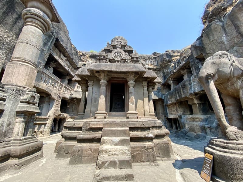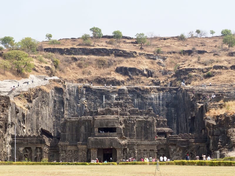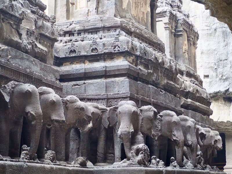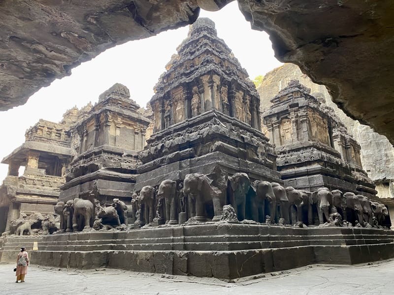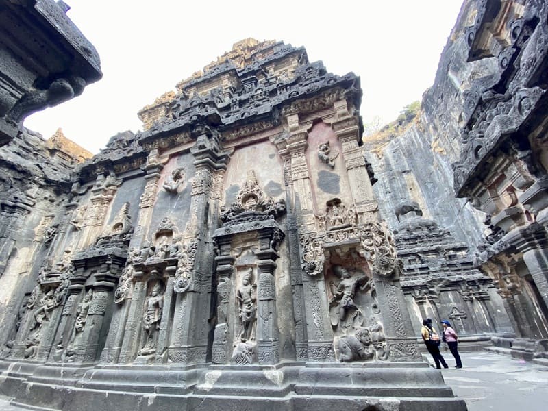 エローラの象徴的存在であるカイラーサナータ寺院(Kailasanatha)は一見、石を積み上げた建造物に見えますが、なんと!ひとつの岩山を掘って作った世界最大の石窟寺院。