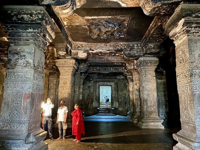 午前中の早い時間帯は空いているので、エローラに到着したらまずは第16窟を訪れるのがおすすめ。目を閉じればノミやハンマーで岩を砕く音が古から聞こえてきそうなほどに静かな空間が広がり、落ち着いて鑑賞できます。