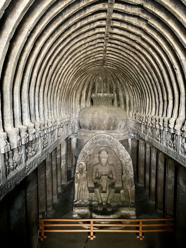 第10窟であるヴィシュヴァカルマ窟(Vishvakarma)は、仏教窟の中でも後期とされる7世紀頃に建設されたもので、エローラにおける唯一のチャイティヤ窟。