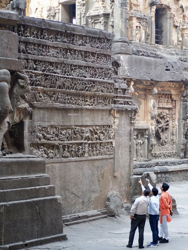 最初に見ると他の石窟が色褪せてしまうという意見は否めないですが、まずは人の少ない寺院をゆっくりと堪能し、その後は興味のある石窟をピックアップして見学しつつ、最後にまた第16窟に戻ってくるというのが個人的におすすめするエローラの歩き方。